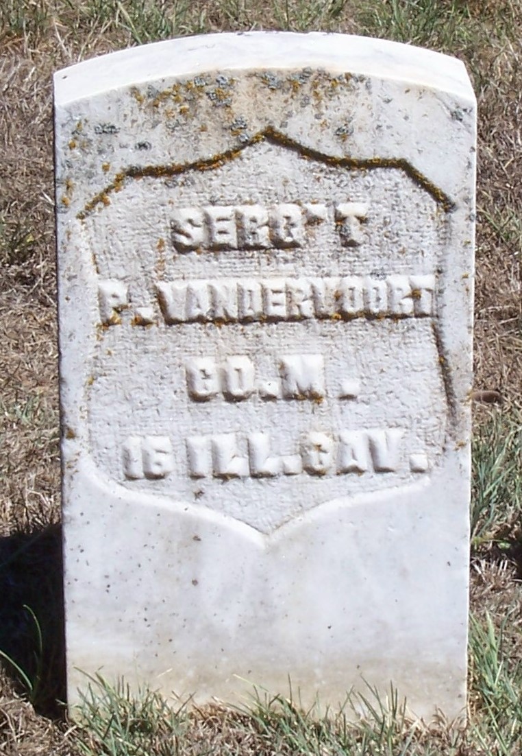During the Civil War, he lied about his age and enlisted June 10, 1862 as a private in Company G, 68th Illinois Volunteer Infantry (a 3-month regiment). Vandervoort was mustered out September 26, 1862 at Camp Butler near Springfield, Illinois. On May 19, 1863 he enlisted as a private in Company M, 16th Illinois Volunteer Cavalry (again, lying about his age) and mustered out of the service August 1, 1865 as a sergeant. While with the 16th Illinois Cavalry, Vandervoort was captured by Confederates near Jonesville, Virginia in December 1863 and held at Andersonville Prison in Georgia, and Belle Isle and Libby prisons in Richmond, Virginia.